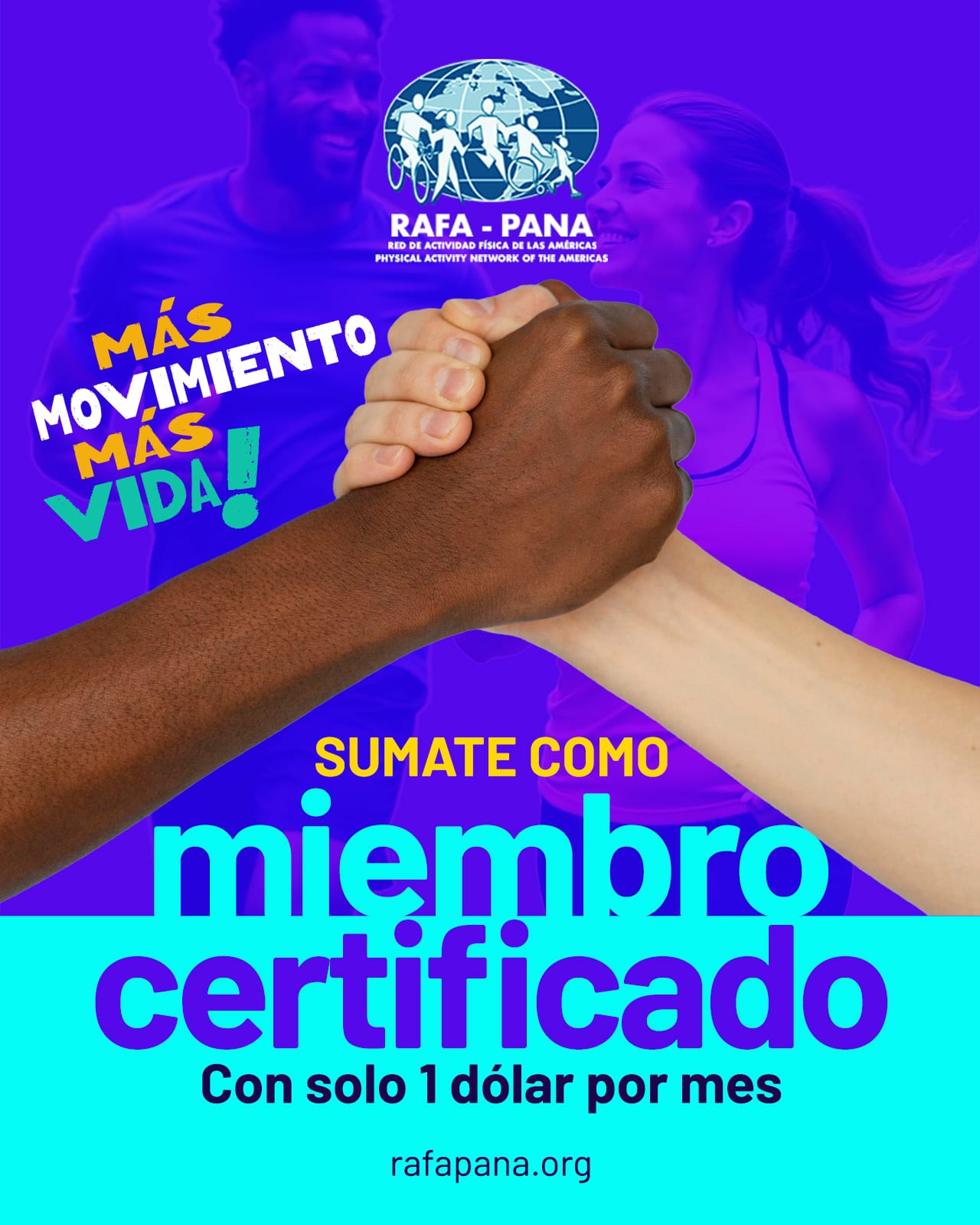 Al inscribirte como miembro certificado de RAFA PANA, accedés a una red regional comprometida con la promoción de la vida activa y saludable, y recibís múltiples beneficios pensados para fortalecer tu desarrollo profesional y tus acciones territoriales.