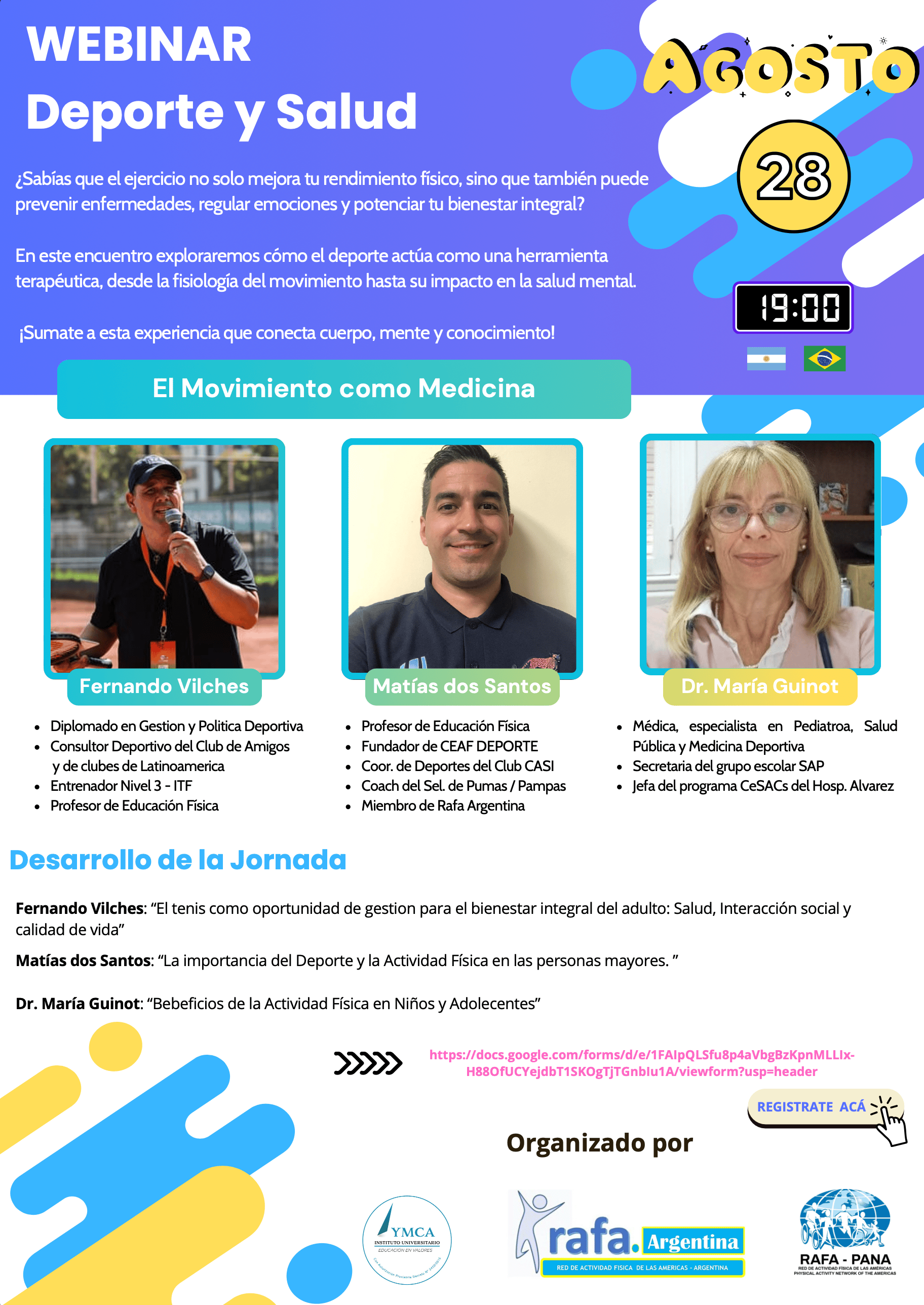 28 Agosto, 19:00 Argentina/Brasil. Modalidad: Online ¿Sabías que el ejercicio no solo mejora tu rendimiento físico, sino que también puede prevenir enfermedades, regular emociones y potenciar tu bienestar integral?